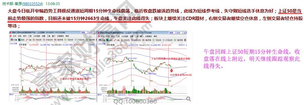 上證50走勢(shì)是三個(gè)指數(shù)最強(qiáng)的,日線在趨勢(shì)工具極反通道生命線下附近運(yùn)行,下午回踩時(shí)收盤正好落在15分鐘生命線處,明天繼續(xù)觀察此線支撐有效性,右側(cè)交易者等趨勢(shì)明確后在入場(chǎng),激進(jìn)者輕倉(cāng)持股。