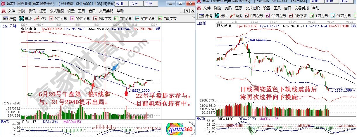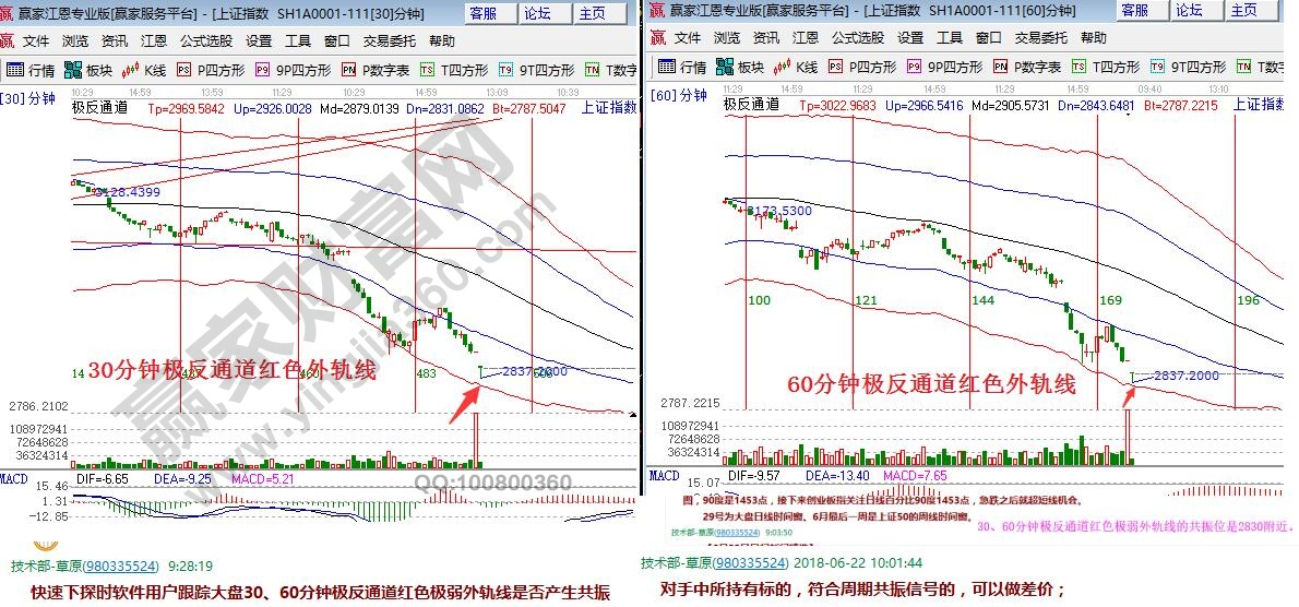 今天市場低開給出21號文章中談到短周期30、60分鐘趨勢工具極反通道紅色超弱外軌線共振信號,早盤遵守軟件工具信號提示差價倉參與,午盤向15分鐘生命線靠攏,此線是贏家江恩系統短線操盤線,線上運行則短線有操作空間,今天線下參與是共振買點。
