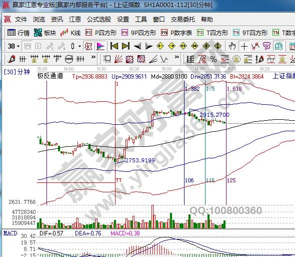 此拐點(diǎn)是反彈的中繼還是反彈的結(jié)束呢?通過(guò)短周期進(jìn)行解決,20號(hào)15分鐘突破生命線為短線買(mǎi)點(diǎn),26號(hào)失守15分鐘生命線為賣(mài)點(diǎn),【依據(jù)贏家江恩操盤(pán)規(guī)則:動(dòng)于陰末止于陽(yáng)極】對(duì)于2691點(diǎn)的反彈最后防線是60分鐘生命線2850附近,此位置不破日線有繼續(xù)向日線生命線反彈的動(dòng)能,失守則宣布反彈結(jié)束,再度進(jìn)入摸底【漲中之消,其消也漸微,消中之長(zhǎng),其漲也亦漸微】。