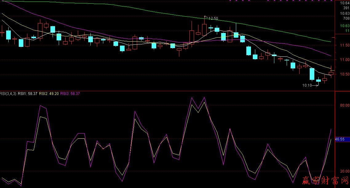 (1)RSI指標處于+20區(qū)域,出現(xiàn)向上交叉時,是買入的信號。而當該指標處于90并出現(xiàn)向下的交叉時,為賣出的信號。在RSI指標使用過程中,可以結合DMA指標或MACD指標綜合分析。