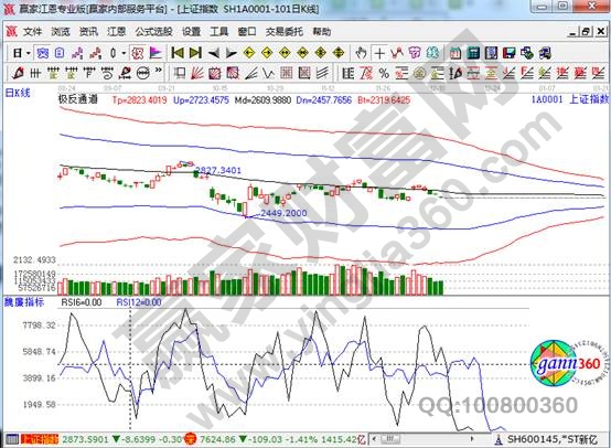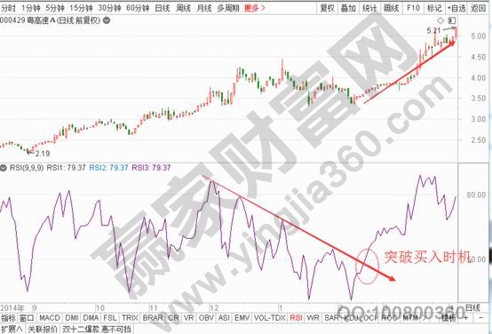 2、這個(gè)戰(zhàn)法如果是運(yùn)用在上海黃金TD市場(chǎng)上也是非常廱的,如果是該指標(biāo)突破20值做多單,跌破80值做空單。對(duì)于20和80的界限,在前面也介紹過(guò),這里就再簡(jiǎn)單的說(shuō)一下,即RSI指標(biāo)在20以下就是屬于超跌的,如果跌破之后我們就要注意行情的反彈機(jī)會(huì),一旦突破20值行情開(kāi)始拉升就可以果斷進(jìn)入賺錢(qián),一旦RSI突破80值就要注意風(fēng)險(xiǎn),一旦跌破80值就要進(jìn)行逢高減倉(cāng)或者賣(mài)出股票。
