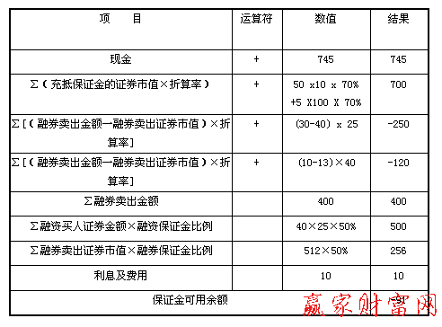 現金轉入后賬戶的保證金計算(單位:萬元)