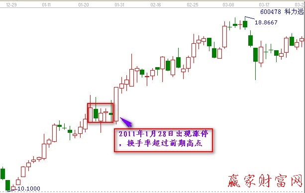 個股在走出新的高點的趨勢中,也是出現小陰小陽的調整后出現大陽線后追入。比如:科力遠(600478) 在2011年1月28日突破新高后連續多個交易日收出上影線,但不跌破創新高交易日的開盤價。