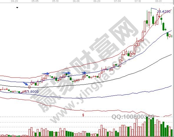 這種走勢一般出現在股價經過下跌的走勢后期,突然放量拉高股價。而在這種走勢后,出現下跌陰線,套住追漲資金。后市順勢下跌出現震蕩后再一次拉升到震蕩高點,然后又再次出現下跌并且出現新低,造成市場持股信心降低。再一次拉升震蕩高點的時候,很多前期被套牢的籌碼出局的占到多數,此時籌碼就被主力吸收。并且再一次的下跌新低為拉升前創造出條件,收集足夠的籌碼。在所有的控盤莊股中,拉升初期都會出現