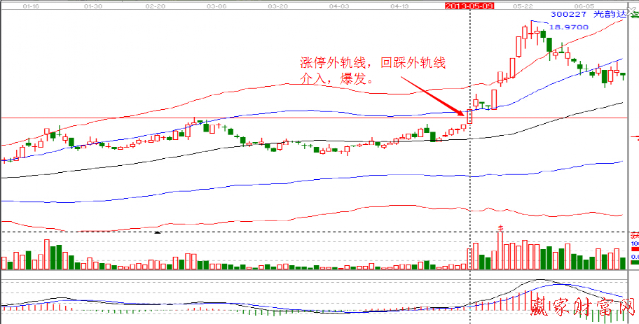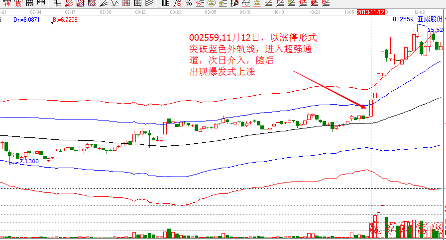 1、漲停突破外軌,當日成交量比前量能放大1-1.5倍;